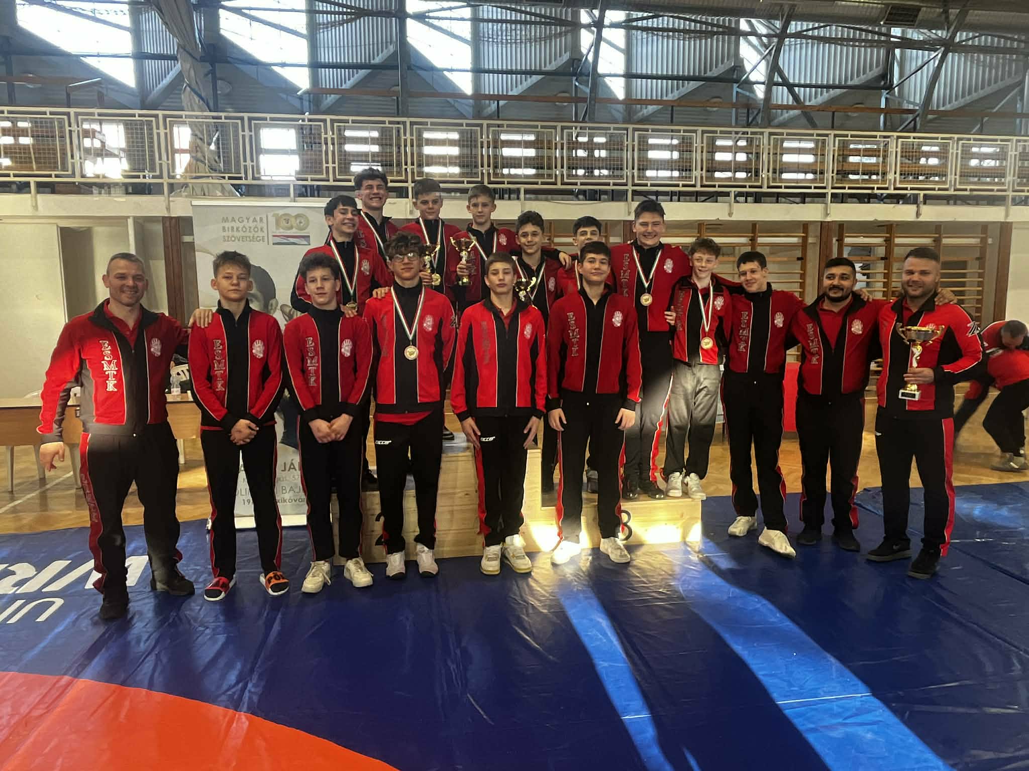 Vasárnap már a szabadfogásúaké volt a főszerep Abonyban, ahol a korosztály válogatott címeres mezeiért küzdöttek a fiatalok. A kötöttfogású versenyhez képest egy arannyal kevesebb jutott a mieinknek: Mészáros György (41 kg), Horváth Lóránt (48 kg) és Koch Máté (52 kg) zárta veretlenül a napot. Emellett három ezüst- és három bronzérem is az ESMTK-hoz került, így a csapatpontversenyben is magabiztosan az élen végeztünk.